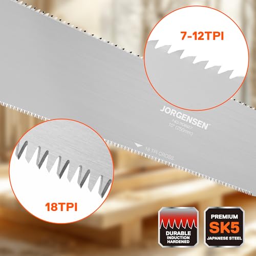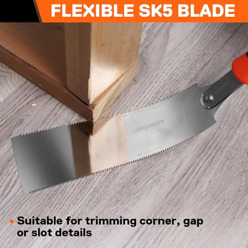 JORGENSEN Japanese Pull Saw, 10 Inch Pro Double Edge Hand Saw – SK5 Flexible Replaceable Blade, 7-12 & 18 TPI Flush Cut Blade, Japanese Handsaw for Hardwood & Softwood Woodworking, Wood Trim