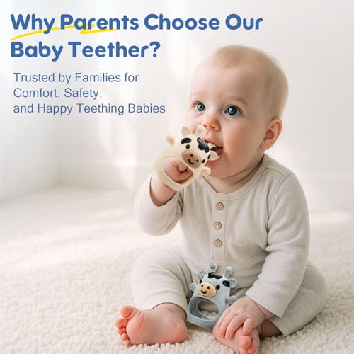Be the first to review “TOHIBEE 2 Packs Baby Teething Toys for 0-6 6-12 Months, Food Grade Silicone Adjustable Cow Teething Mitten, Chew Teether Toys for Teething Pain Relief, Baby and New Born Essentials, Blue & White”