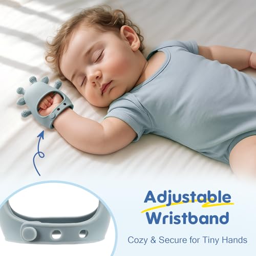 TOHIBEE 2 Packs Baby Teething Toys for 0-6 6-12 Months, Food Grade Silicone Adjustable Cow Teething Mitten, Chew Teether Toys for Teething Pain Relief, Baby and New Born Essentials, Blue & White