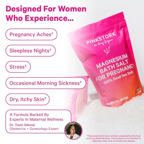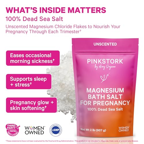 Pink Stork Pregnancy Bath Soak – Unscented Magnesium Flakes for Bath or Foot Soak – Pure Dead Sea Salt – Relief for Pregnancy Aches, Swollen Feet, and Stress – Clean, Fragrance-Free – 2 lb