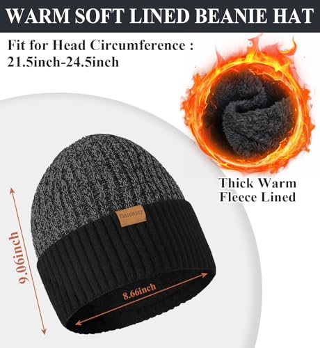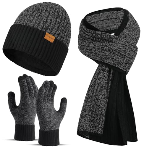Men’s Scarf Hats Gloves Sets Winter Gifts, 3 PCS Fleece Lined Beanie Warm Long Scarves for Cold Weather Christmas