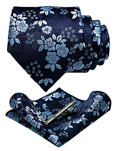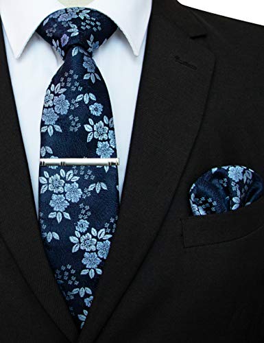 JEMYGINS Floral Necktie and Pocket Square Tie Clip Sets for Men