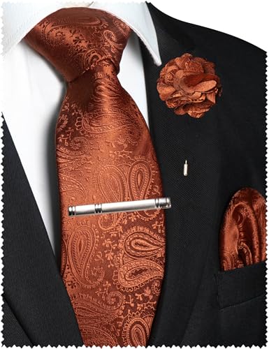JEMYGINS Mens Paisley Tie and Lapel Pin Necktie Pocket Square and Tie Clip with Sets for Business Casual 4PCS