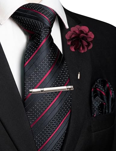 JEMYGINS Mens Striped Tie and Lapel Pin Necktie Pocket Square with Tie Clip Sets for Business Casual 4PCS