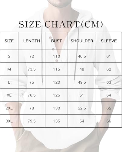 Men Lightweight Linen Blend Hoodie Shirt Long Sleeve V Neck Button Down Casual Pullover with Adjustable Drawstring