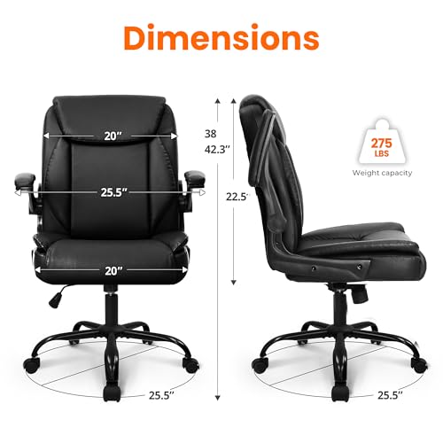 NEO CHAIR Office Desk Computer Chair Ergonomic Executive Mid-Back Leather Gaming Chair with Adjustable Flip-Up Armrests Wheels Swivel for Home Study Task (Jet Black)
