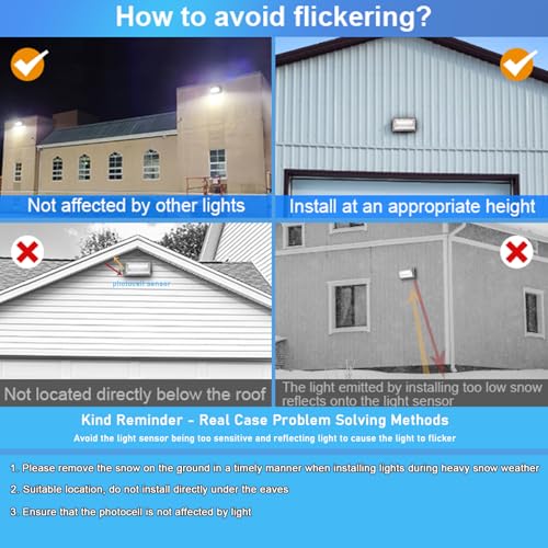 Safe and Reliable: The dusk to dawn outdoor security light is equipped with a 100-277V high-efficiency LED driver, which has multiple protection functions to prevent flickering, overvoltage, and other issues, allowing you to use it with more confidence.
