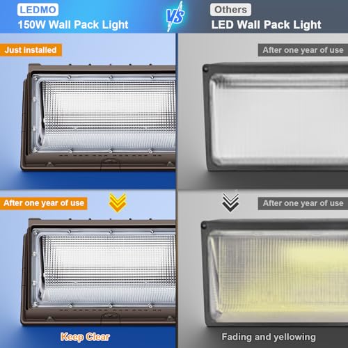 Dusk to Dawn Photocell: 150W LED wall pack light with photocell ensures automatic light on at night and automatic light off during the day. Not affected by other lighting achieve ideal lighting environment.