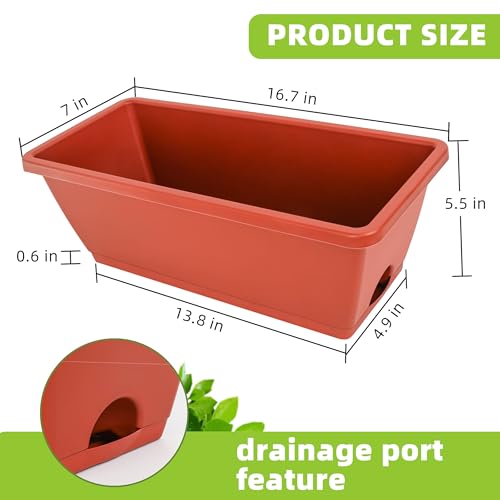 Window Box Planter, 7 Pack Plastic Vegetable Flower Planters Boxes 17 Inches Rectangular Flower Pots with Saucers for Indoor Outdoor Garden, Patio, Home Decor