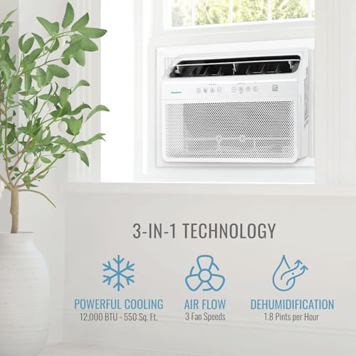Cooling Power: This air conditioner has 12,000 BTUs of cooling power and dehumidifies the air up to 1.8 pints per hour in rooms up to 550 square feet; Keep your apartment, living room, and any other medium to large space comfortable and cool