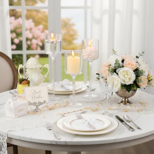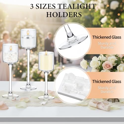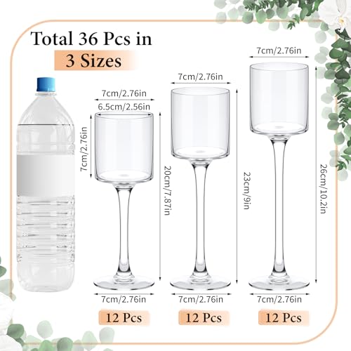 Package Included: every package contains 36 pieces glass stemware candle holders including 12 sets, 3 of each, allowing you to decorate your desired space abundantly; We offer three size variations including 7.87 x 2.76 x 2.76 inches/ 20 x 7 x 7 cm, 9.06 x 2.76 x 2.76 inches/ 23 x 7 x 7 cm and 10.24 x 2.76 x 2.76 inches/ 26 x 7 x 7 cm; This allows you to choose the suitable size according to your needs