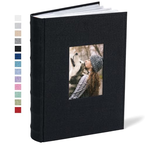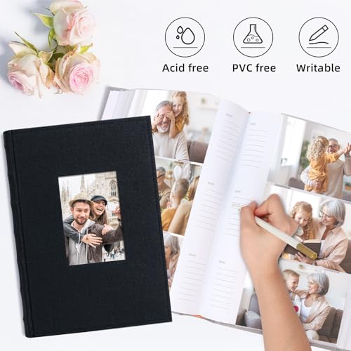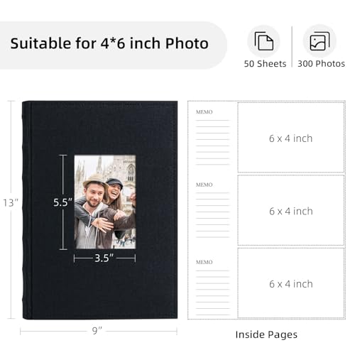 Vienrose Photo Album 4×6 300 Photos Linen Frame Cover with Memo Areas Photobook Large Capacity Slip-in Pictures Book for Wedding Baby Vacation, Black