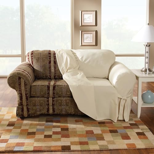 Protect your loveseat from wear and tear with this beautiful, durable SureFit Loveseat Slipcover. Designed to fit loveseats, the Cotton Duck collection is a classic design that creates a clean foundation to match almost any decorative style. Elegant, but functional, ties keep your slipcovers snug and secure and can be looped together to create a bow for a dressier flourish. Care is easy—just remove your one-piece chair covers in seconds and machine wash to keep them looking like new. Part of the Cotton Duck collection, with matching slipcovers available for sofas, wingchairs, folding chairs, ottomans and dining room chairs.