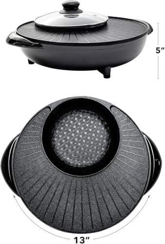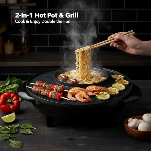 MULTI-FUNCTIONAL HOTPOT – This electric hot pot with grill is powered by a 1200W fast-heating element which can simmer, boil, fry, roast, and stir-fry all at the same time. Suitable for personal use or indoor casual dinner, small family gathering and social events. A perfect choice for winter and gift giving seasons like Thanksgiving or Christmas.