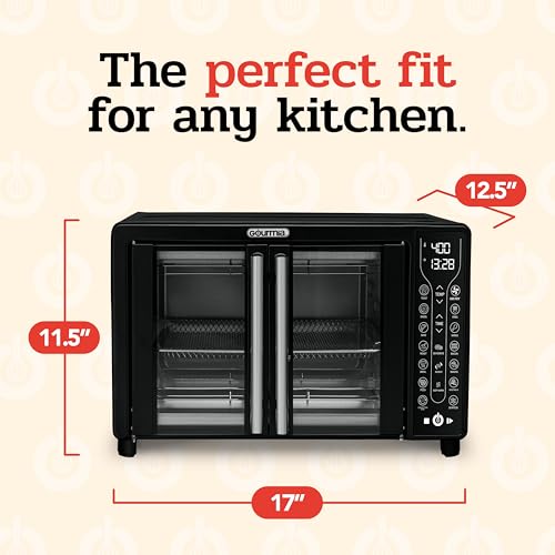 Be the first to review “Gourmia Toaster Oven Air Fryer Combo 17 cooking presets 1700W french door digital air fryer oven 24L capacity accessories, convection rack, baking pan tray recipe book GTF7460,Large,Black”