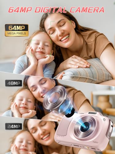 Digital Camera,Autofocus 4K Vlogging Cameras for Photography with 32GB Card,64MP Portable Compact Point and Shoot Digital Camera for Teens Kids Adult Beginner with 16X Zoom Anti Shake (Pink)