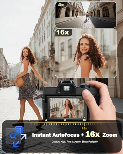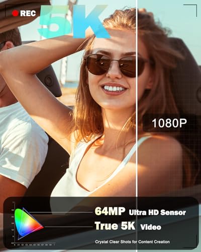 【Professional Camera & User-friendly】:For photo lovers, our 5K photography digital camera is a great choice. With a 52mm F1.8 lens and 64mp pixels, it offers sharpness, great bokeh & top imaging. Auto-focus is responsive even in low-light. It’s super user-friendly, point and shoot for beginners to capture life’s moments.