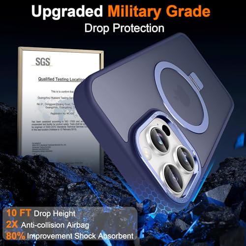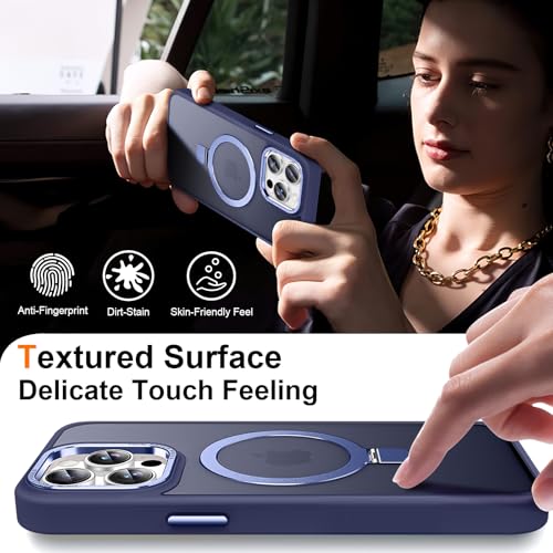 Magnetic for iPhone 13 Pro Case with Ring Stand, [10 FT Drop Protection] [Velvety Touch] Slim Translucent Matte Back Shockproof Phone Case for iPhone 13 Pro 6.1”, Blue