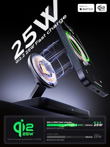25W Ultra‑Fast Wireless Charging: You can charge iPhone from 0-50% in 30 minutes and Apple Watch Series 10 from 0-80% in 40 minutes. THREEKEY apple charging station uses the latest fast charging technology, backed by Qi2 certification, seamlessly compatible with MagSafe.A real fast wireless charging station built for future iPhones.